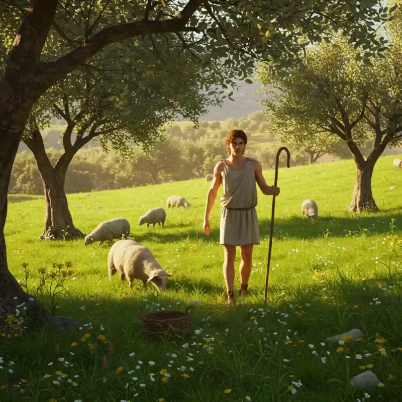 고대 트로이 왕국의 다르다니아에는 트로스 왕의 아들 가니메데가 거주했습니다. 그는 인간 세상에서 찾아보기 힘든 비할 데 없는 미소년으로 명성이 자자했습니다. 특히 윤기 나는 곱슬거리는 머리카락, 맑고 깊은 눈, 그리고 완벽한 균형미를 갖춘 신체는 당시 모든 이들의 감탄을 자아냈으며, 그의 명성은 인간 세계를 넘어 올림포스 신들의 영역에까지 전해졌습니다.